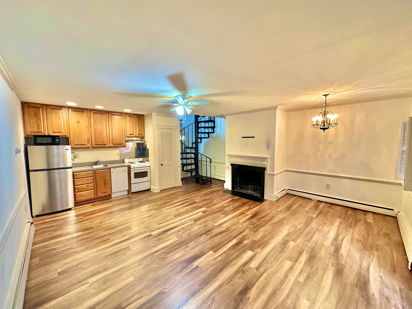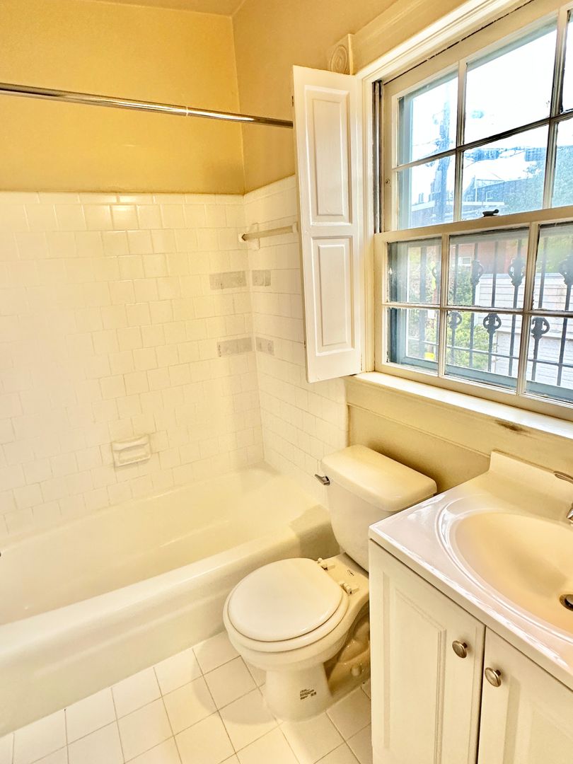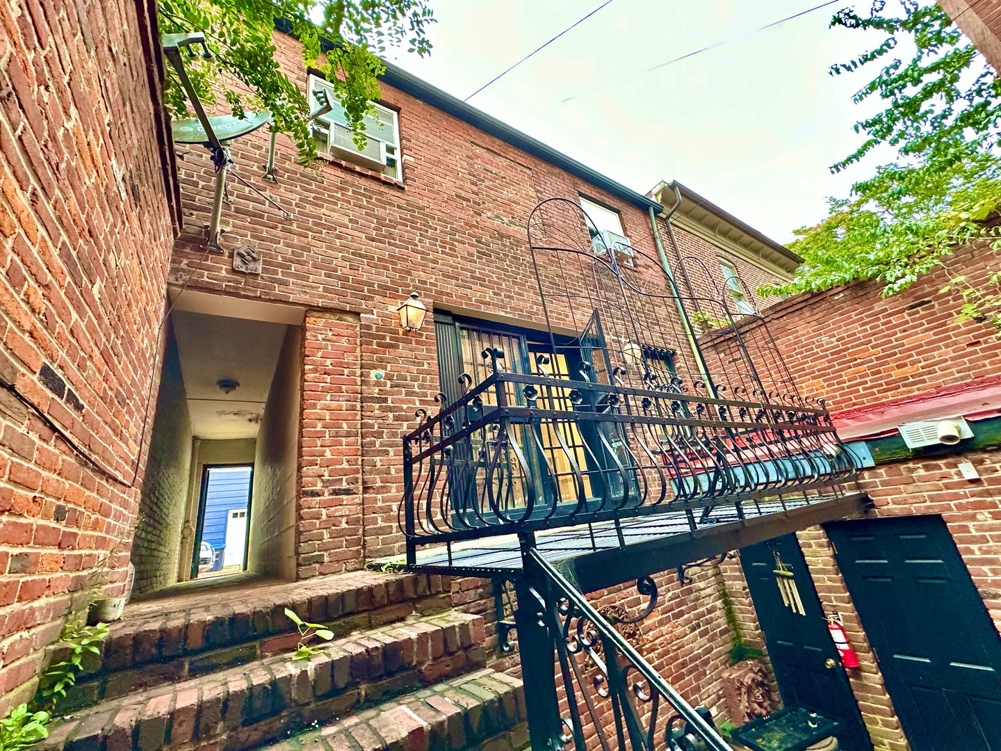 Live in this historic carriage house nestled in the back of a historic row home and it's just steps from the Capitol! The Carriage house has a secret entrance from the rear of the home via the alley. It welcomes you with its large wrought iron balcony and glass French doors to let light gleam in. The open-concept first floor has hardwood floors and a decorative fireplace! Spacious living and dining area with an open kitchen. The kitchen has an electric range, a refrigerator, and a dishwasher! The circular staircase will whisk you away upstairs to the bedrooms and 1 bath. The bedrooms will fit a queen-sized bed in each room along with a double closet. Ceiling fans throughout the unit. On the second level, you have a skylight and a French Juliet balcony. The building's laundry is a few steps away in the main house. Window AC and electric heat in the unit. This historic main home features a beautiful antique mirror in the building entry hallway along with a wrought-iron staircase railing from the original Embassy of Switzerland in Washington. A front garden patio is enjoyed by all the residents of the building. The square footage is unknown.