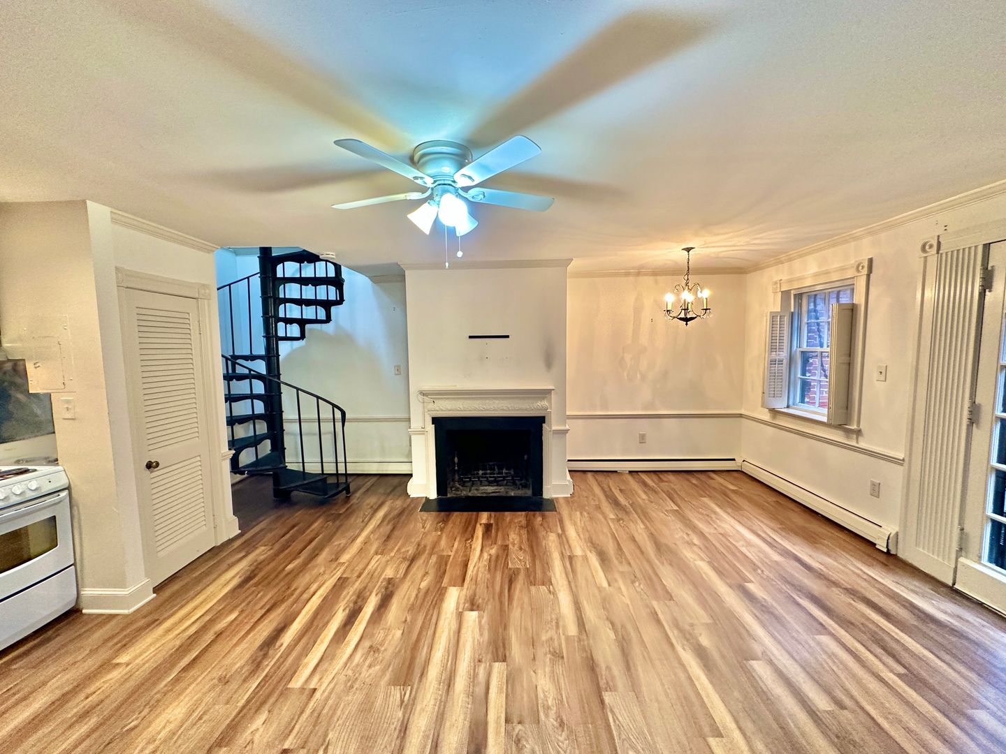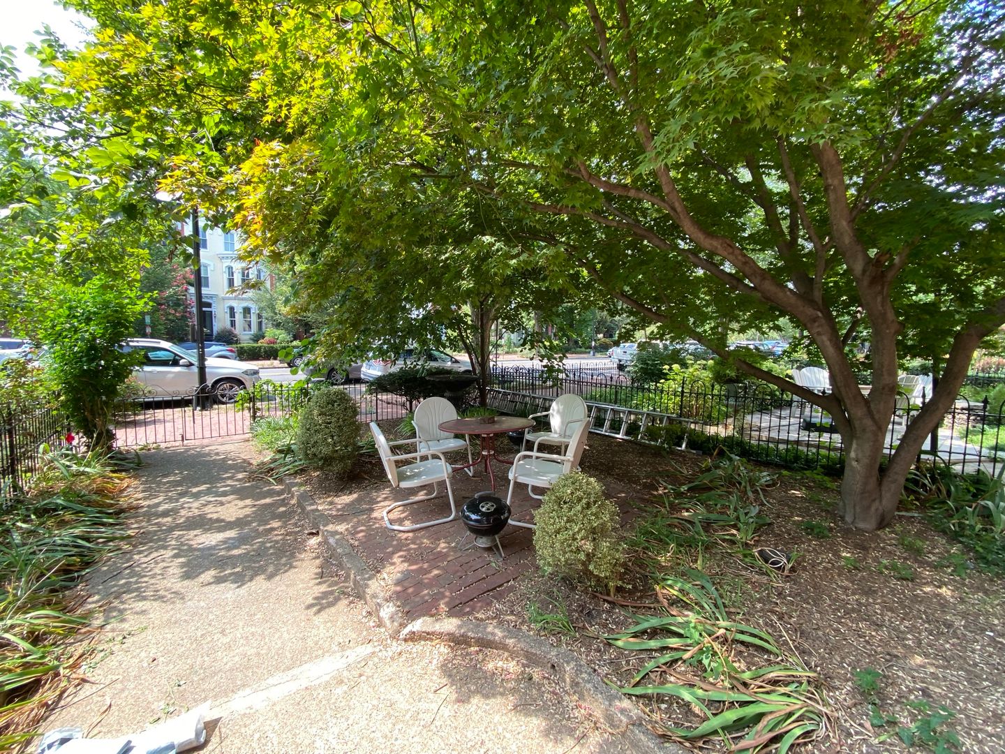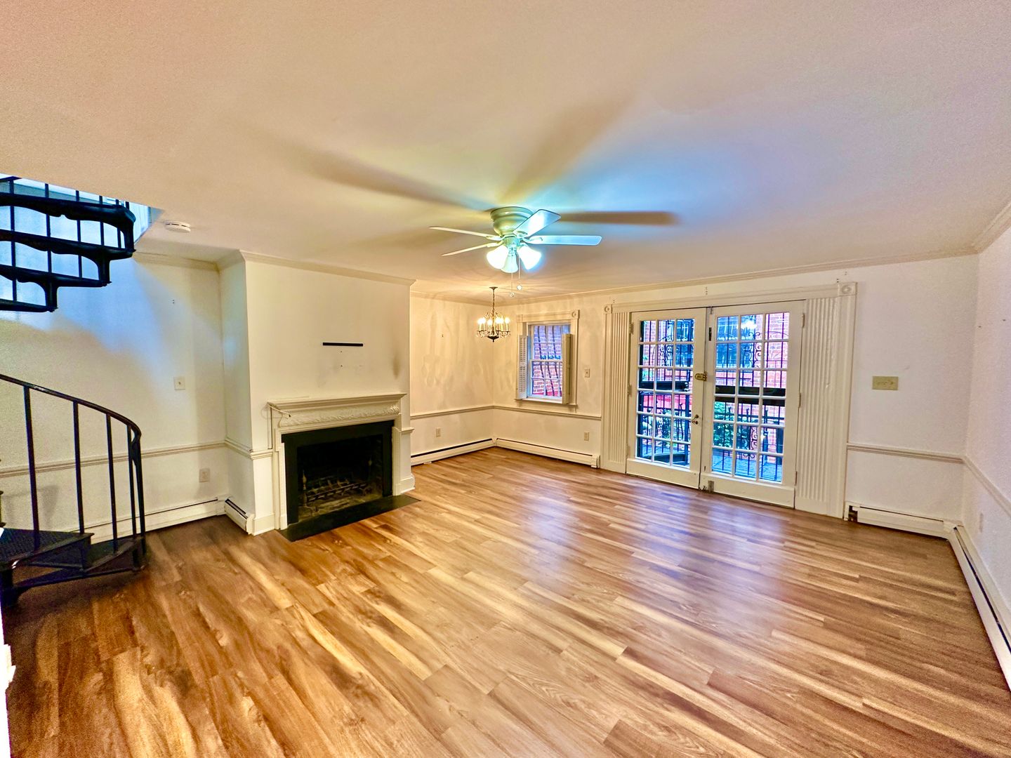 Live in this historic carriage house nestled in the back of a historic row home and it's just steps from the Capitol! The Carriage house has a secret entrance from the rear of the home via the alley. It welcomes you with its large wrought iron balcony and glass French doors to let light gleam in. The open-concept first floor has hardwood floors and a decorative fireplace! Spacious living and dining area with an open kitchen. The kitchen has an electric range, a refrigerator, and a dishwasher! The circular staircase will whisk you away upstairs to the bedrooms and 1 bath. The bedrooms will fit a queen-sized bed in each room along with a double closet. Ceiling fans throughout the unit. On the second level, you have a skylight and a French Juliet balcony. The building's laundry is a few steps away in the main house. Window AC and electric heat in the unit. This historic main home features a beautiful antique mirror in the building entry hallway along with a wrought-iron staircase railing from the original Embassy of Switzerland in Washington. A front garden patio is enjoyed by all the residents of the building. The square footage is unknown.